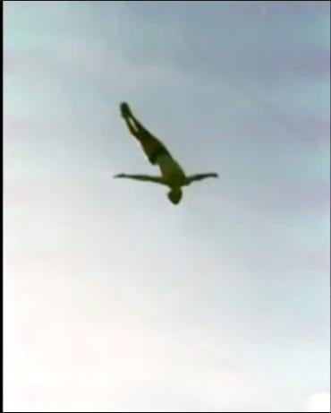 One day, Dutch asked me to find him a high diver — a guy who could dive 80 feet into a pool of water. It was an occupation which fascinated him. So, I found the Maxwell High Diving Company and talked to Dean Maxwell, who invited Dutch and me down to Panama City Beach, Florida, in May of 2000, to the Miracle Strip Amusement Park to witness the set up of the tank and ladder, and watch their first show of the season, including a high dive from 80 feet.