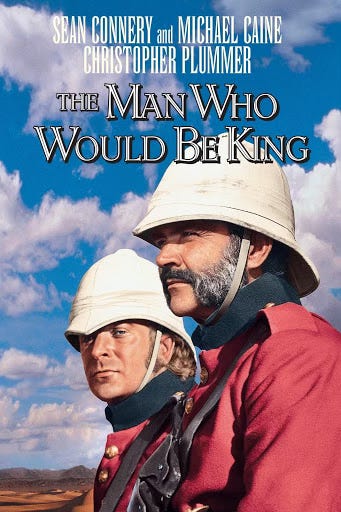 Foreman called from the airport: “Great story. Expand it.” Dutch wrote a 50-page treatment and flew to Morocco to pitch it in person. Dutch went and ended up hanging around the set and hotel until Connery and Caine were available. After several days, he sat down with them and they expressed their serious interest. Dutch went home thinking it was a done deal and he was going to write the screenplay. But then Foreman called and said they changed their mind because all the scenes in England would have been prohibitively expensive to film because of that country’s tax laws.